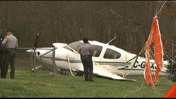 The couple reportedly tried to stop several airports but couldn't. They eventually deployed the Cirrus Airframe Parachute System (CAPS) and floated to the ground in the middle of a neighborhood - landing in someone's yard.
